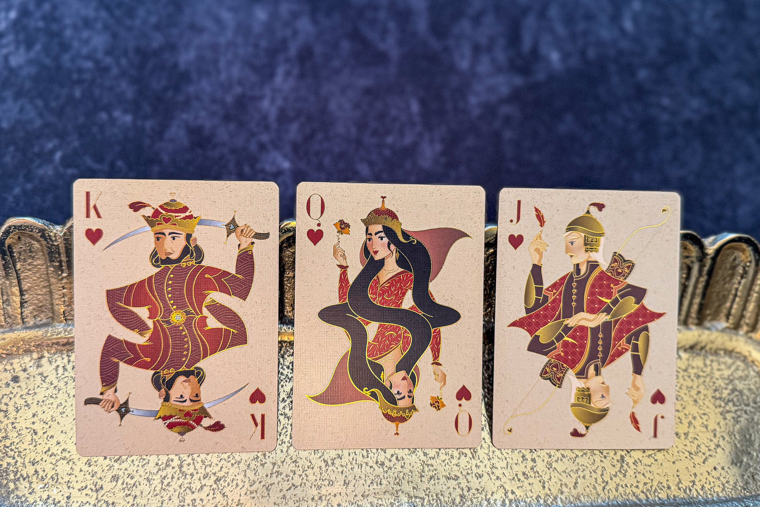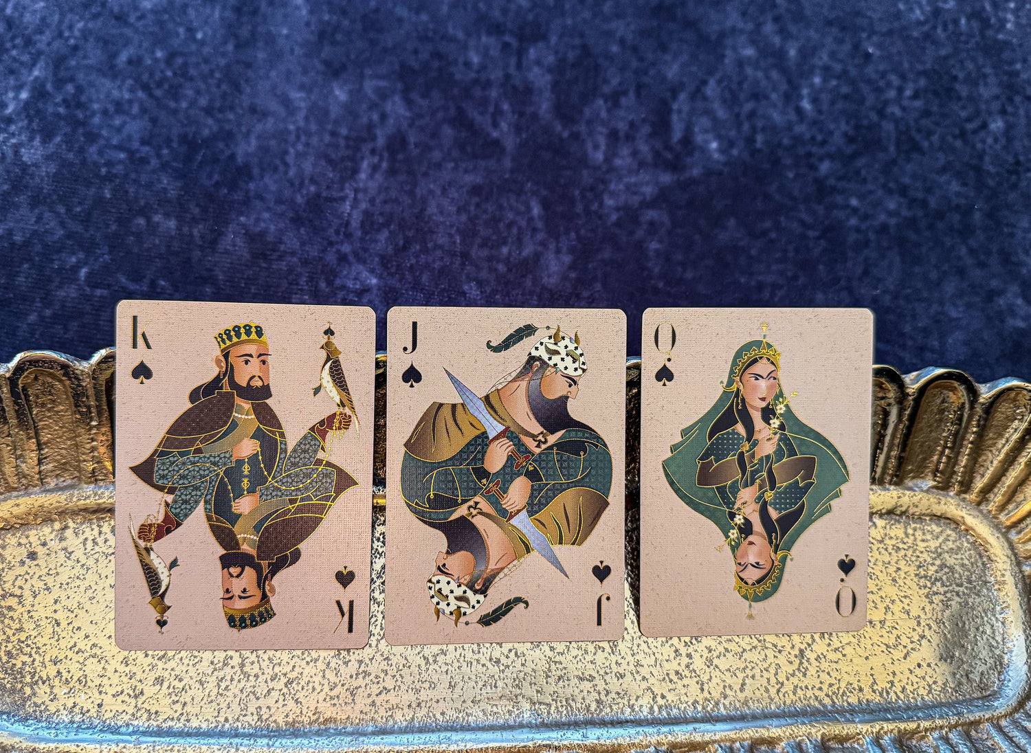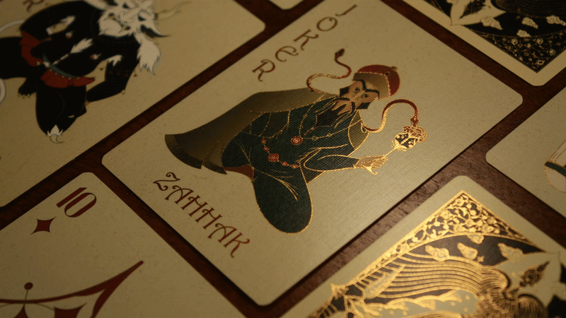 The Shahnameh Playing Cards are inspired by one of the world’s greatest epics: The Shahnameh (The Book of Kings), written over 1,000 years ago by Ferdowsi. This masterpiece is filled with ancient heroes, mythical beasts, epic battles, timeless stories of love, loss, destiny, and the eternal struggle between good and evil in the Persian kingdom around 500 BC. It is often considered the Eastern counterpart to Homer’s Iliad and Odyssey.